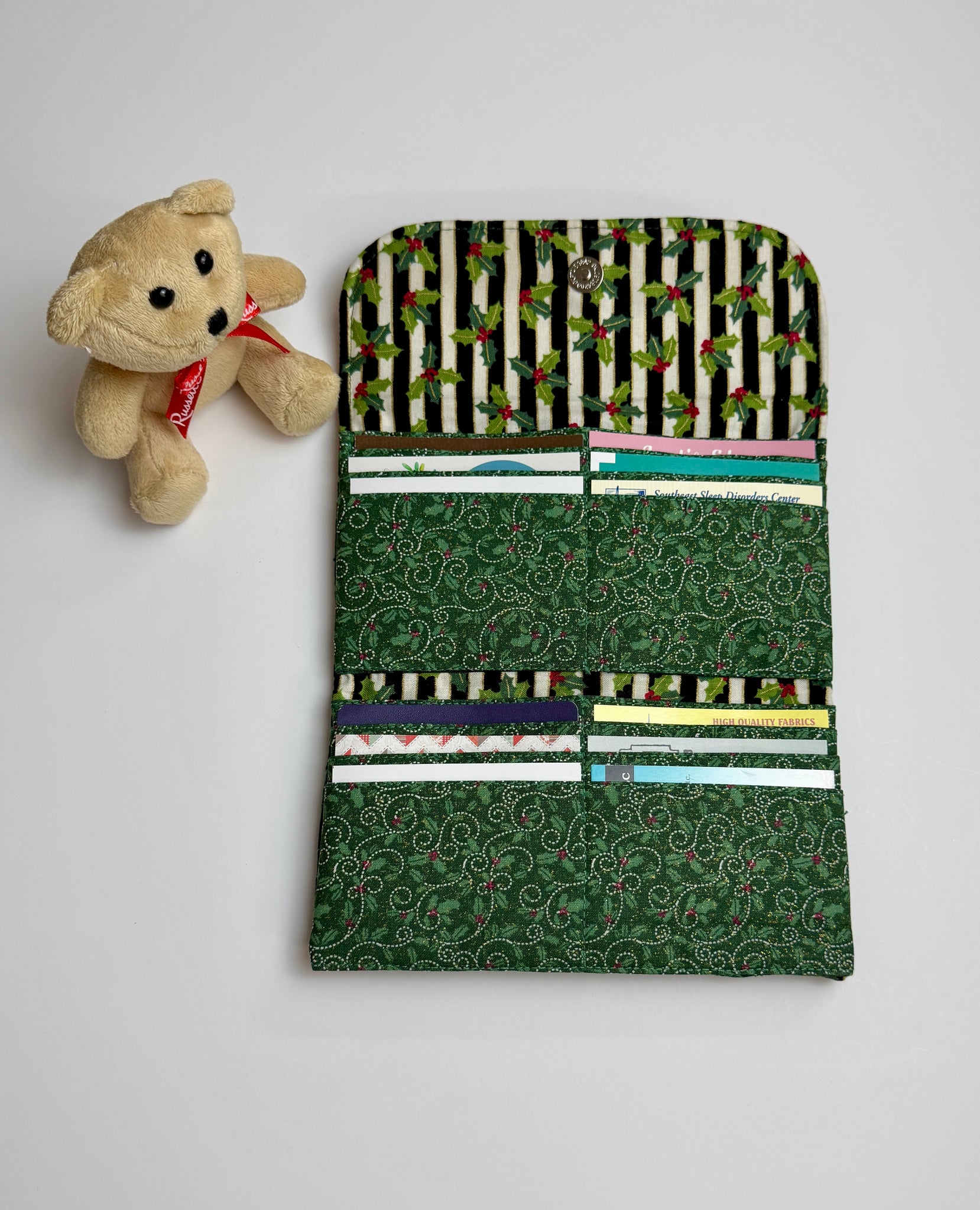 Crafted from 100% premium cotton, this Christmas style bifold wallet combines with find 12 secure card slots and 2 spacious cash pockets – plenty of room to organize credit cards, IDs, and bills in one slim wallet. A strong snap closure keeps everything safely in place on the go.
