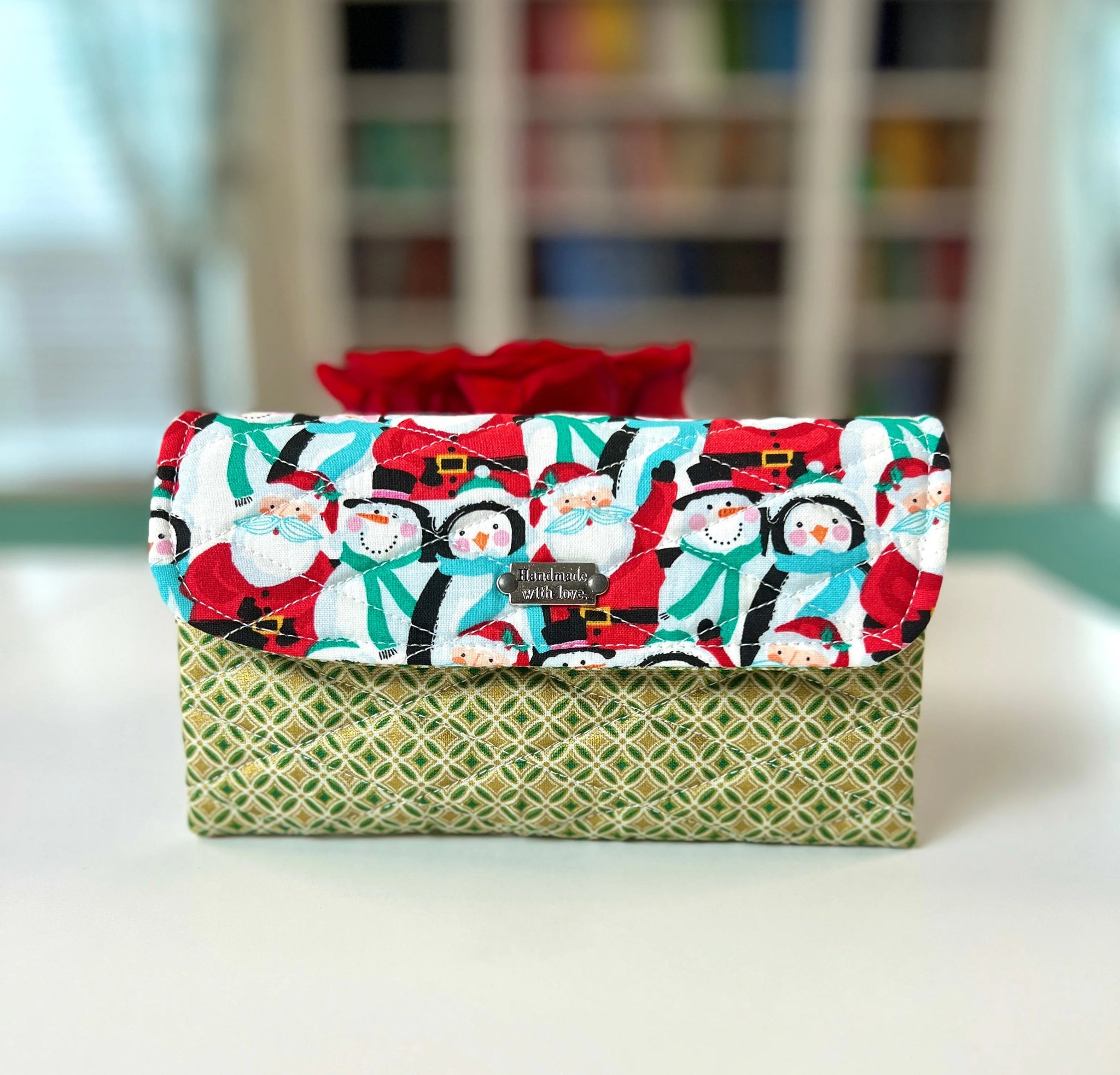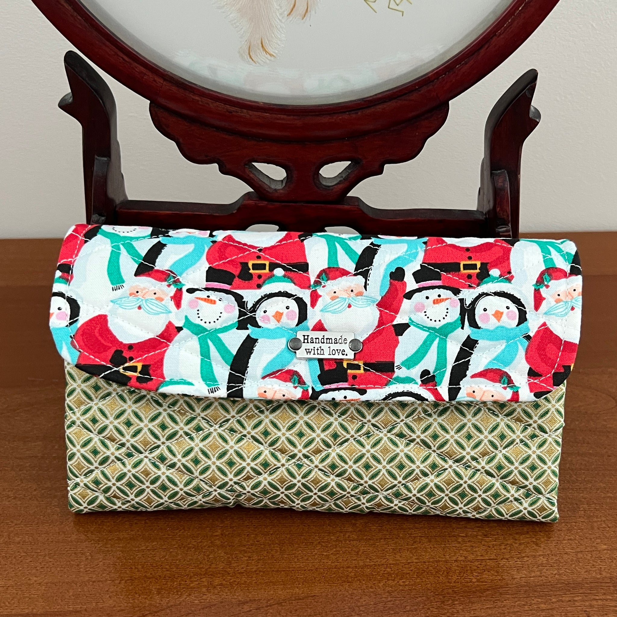 Handmade Bifold Fabric Wallet with 12 Card Slots - Christmas Style